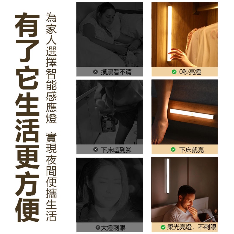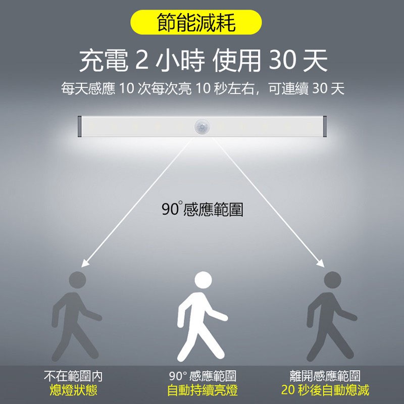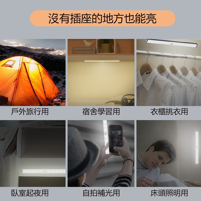 磁吸感應燈 人體 LED 燈條 露營燈 USB充電 LED感應燈 小夜燈 走廊燈 櫥櫃燈 氛圍燈 展示燈 床頭燈 白光